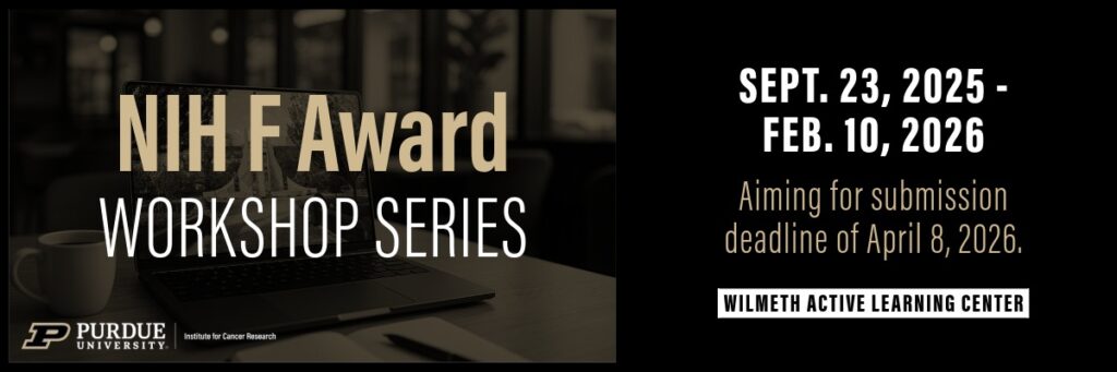 This workshop series is a collaborative effort between the Purdue Institute for Cancer Research, Purdue’s Office of Research and the Office of the Vice Provost for Graduate Students and Postdoctoral Scholars (OGSPS).